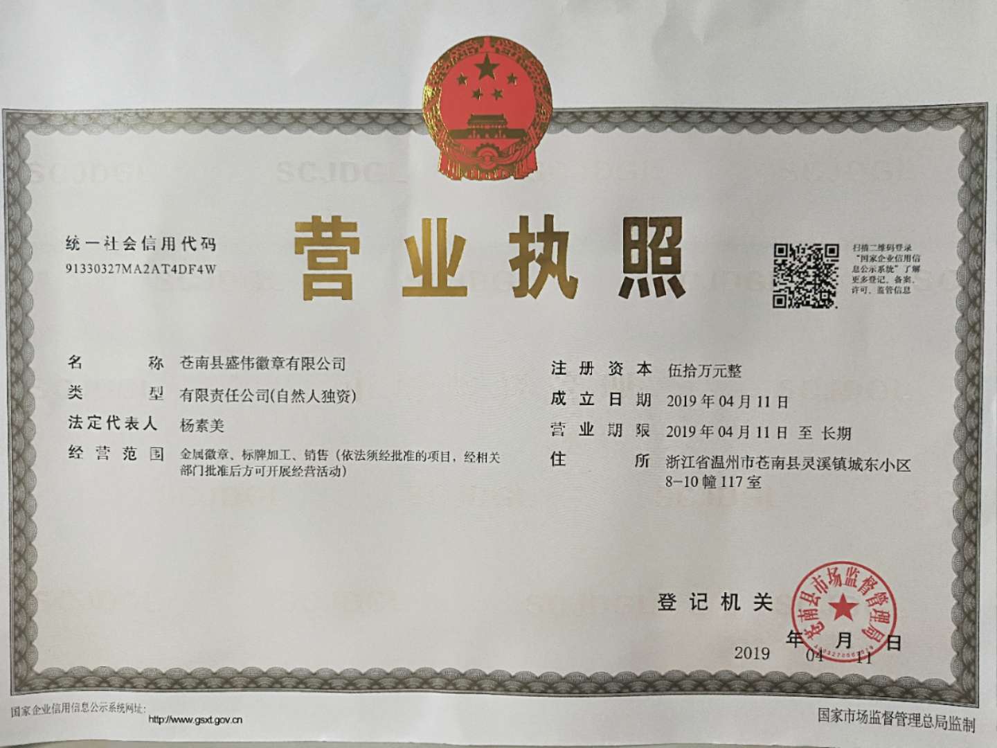 蒼南縣盛偉徽章有限公司成立于2019年,是一家專注于警徽產品設計、、銷售和產品維護的徽章廠家。多年來,我們一直嚴格要求自己,以優(yōu)良產品和誠信為本的理念經營,不斷推動企業(yè)的發(fā)展壯大。我們注重人才培養(yǎng),不斷引進先進的經營理念和管理模式,以滿足企業(yè)長期發(fā)展和擴大的需求。